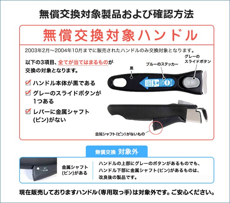 取っ手のとれる調理器具ハンドル無償交換のお申込み